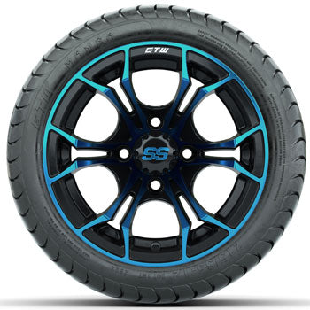 GTW Blue/Black Spyder 12 in Wheels with 215/35-12 Mamba Street Tires - Set of 4