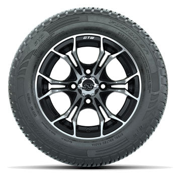 GTW Machined/Black Spyder 12 in Wheels with 215/50-R12 Fusion S/R Street Tires - Set of 4