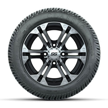 GTW Specter Black and Machined 12 in Wheels with 215/40-12 Excel Lo-Pro Street Tires - Set of 4