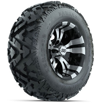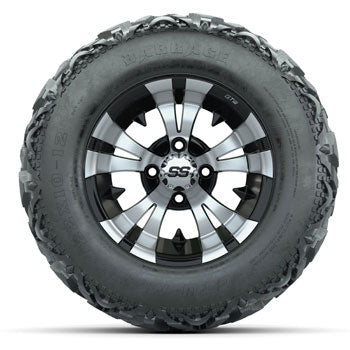 GTW Vampire Black and Machined 12 in Wheels with 23 in Barrage Mud Tires - Set of 4