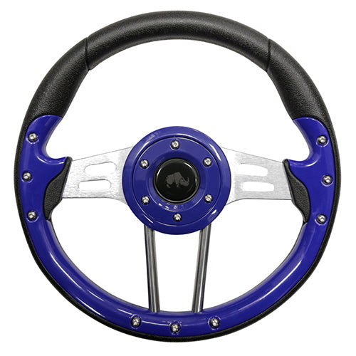 RHOX Golf Cart Steering Wheel -Aviator 4 Blue Grip/Brushed Aluminum Spokes 13" Diameter