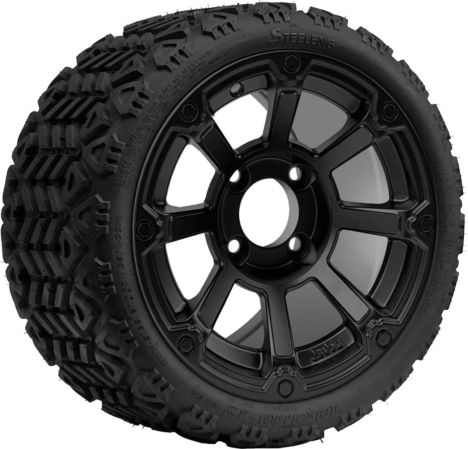 SGC 12 " Cyclops Matte Black Wheel - Aluminum Alloy / STEELENG 18 "x8.5 "-12 " All-Terrain Tire DOT approved Tires Combo - Set of 4