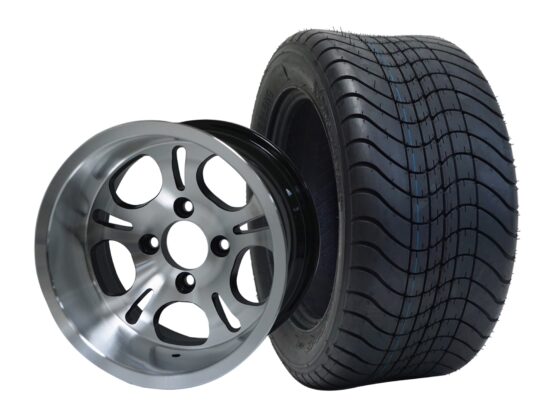SGC 12" Lightside Machined/Black Wheel - Aluminum Alloy / STEELENG 215/50-12 Comfort Ride Street Tire DOT Approved Tires Combo - Set of 4