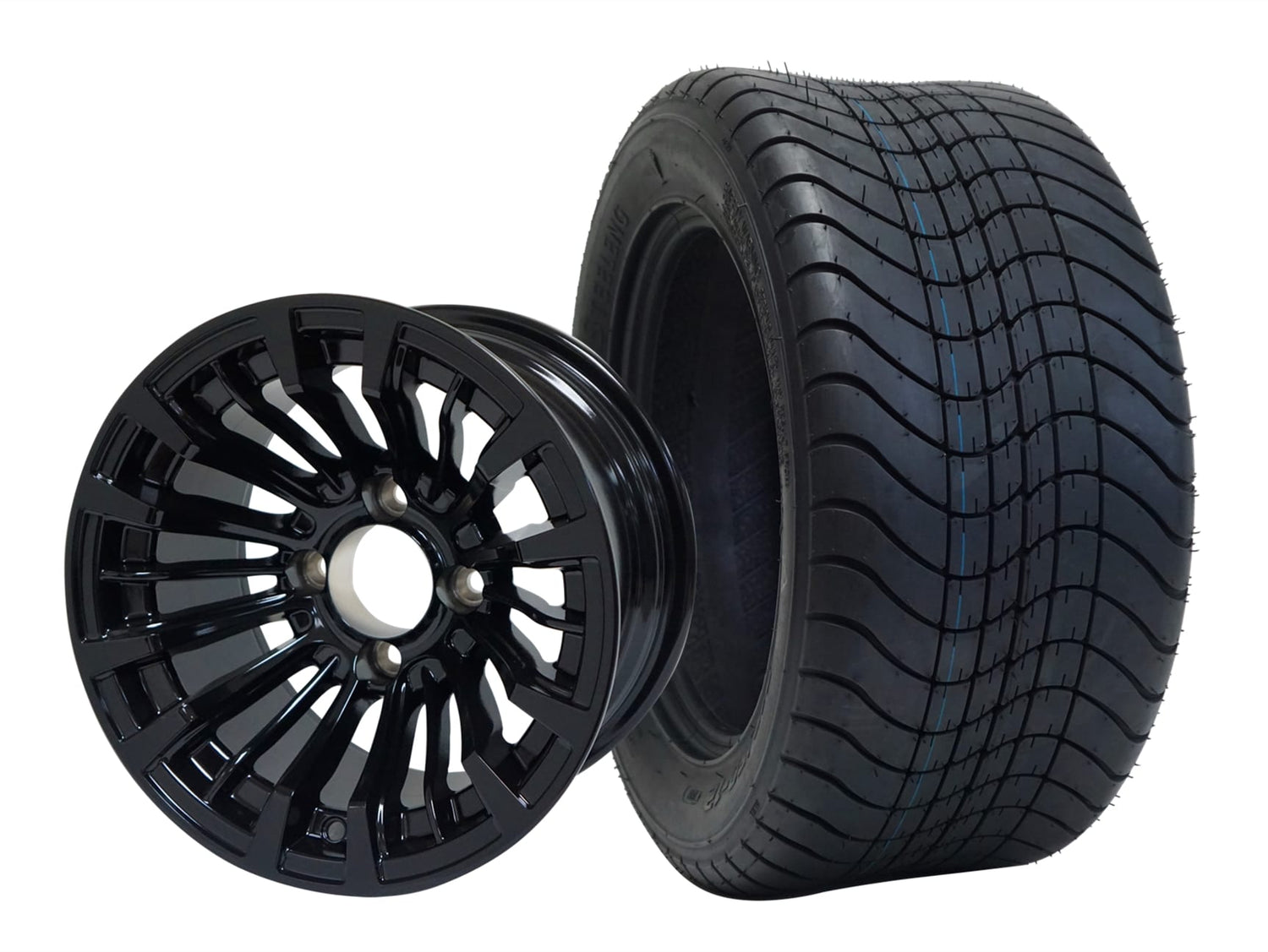 SGC 12" Matador Glossy Black Wheel - Aluminum Alloy / STEELENG 215/50-12 Comfort Ride Street Tire DOT Approved Tires Combo - Set of 4