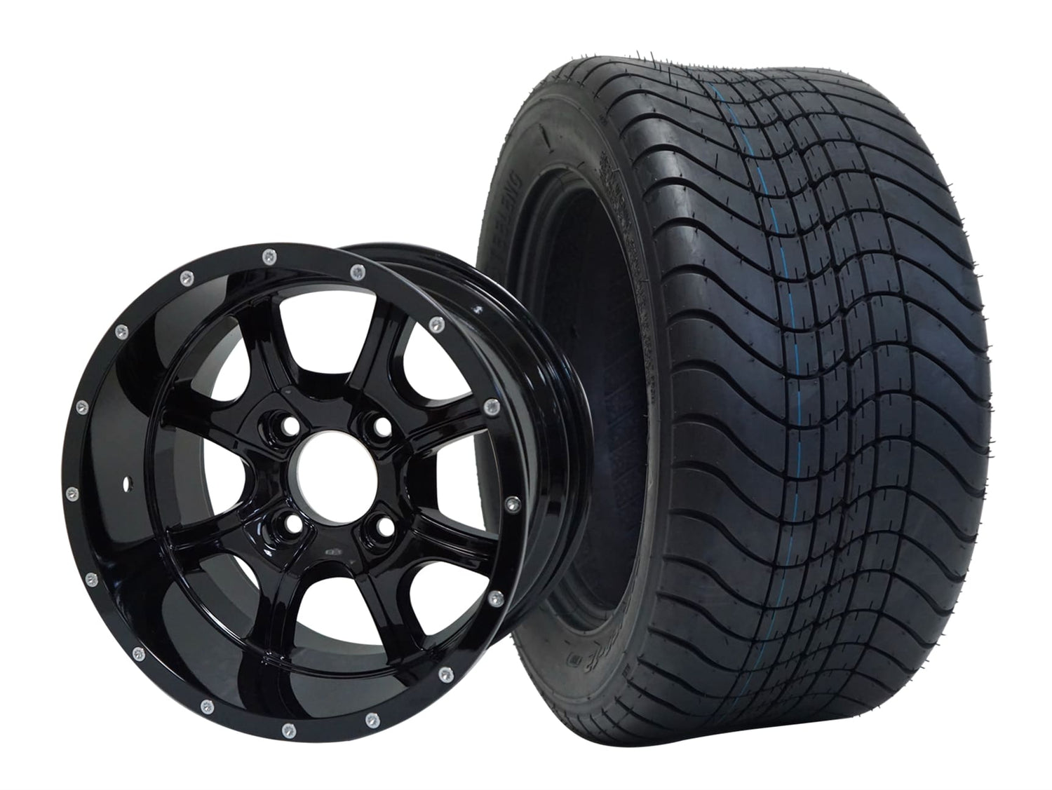 SGC 12" Night Stalker Glossy Black Wheel - Aluminum Alloy / STEELENG 215/50-12 Comfort Ride Street Tire DOT Approved Tires Combo - Set of 4