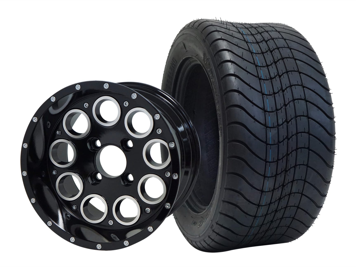 SGC 12" Pioneer Glossy Black Wheel - Aluminum Alloy / STEELENG 215/50-12 Comfort Ride Street Tire DOT Approved Tires Combo - Set of 4