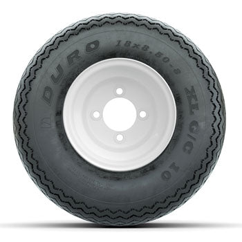 White Steel 8 in Wheels with 18 in Duro Sawtooth Tires - Set of 4